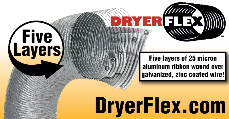 DryerFlex® models DFLX4 and DFLX8 are building code and manufacturer approved 4” round transition duct and are designed for superior performance in connecting the dryer’s exhaust port to a home’s in wall dryer exhaust system. Building code and manufacturer adoption of DryerFlex as a superior solution is based on compliance with IMC 504.4 and IRC 1502.3 as well as a UL 2158A listing.